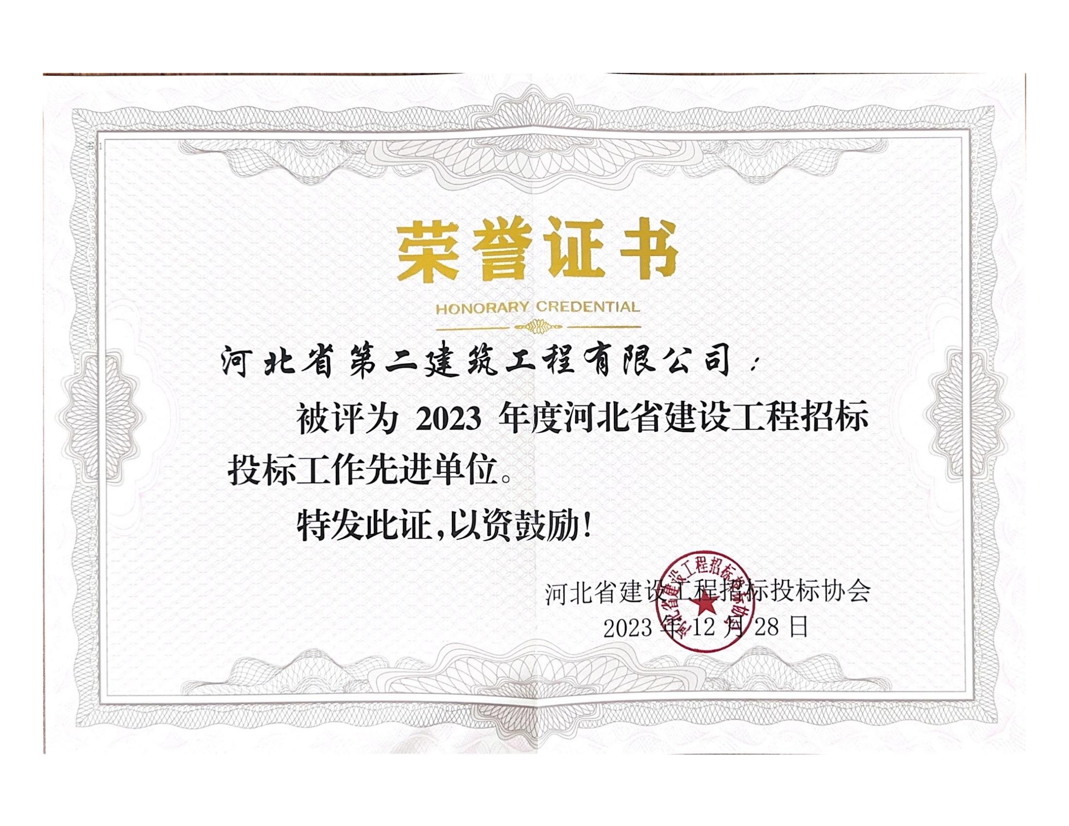 • 公司榮獲2023年度河北省建設工程招標投標工作先進(jìn)單位
