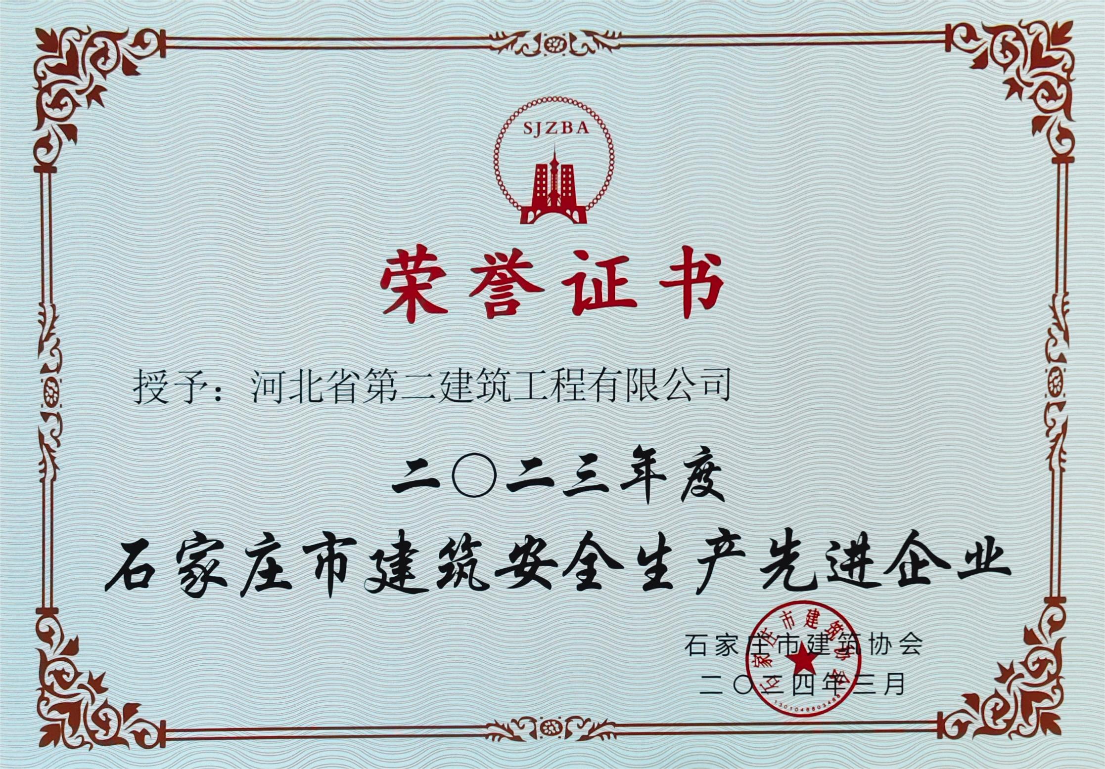 • 2023年度石家莊市建筑安全生產(chǎn)先進(jìn)企業(yè)