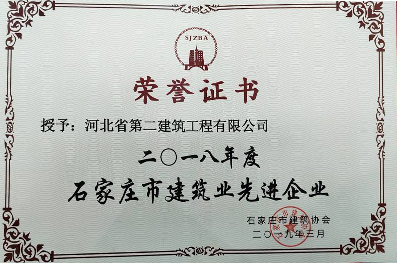 二0一八年度河北省建筑業(yè)先進(jìn)企業(yè)