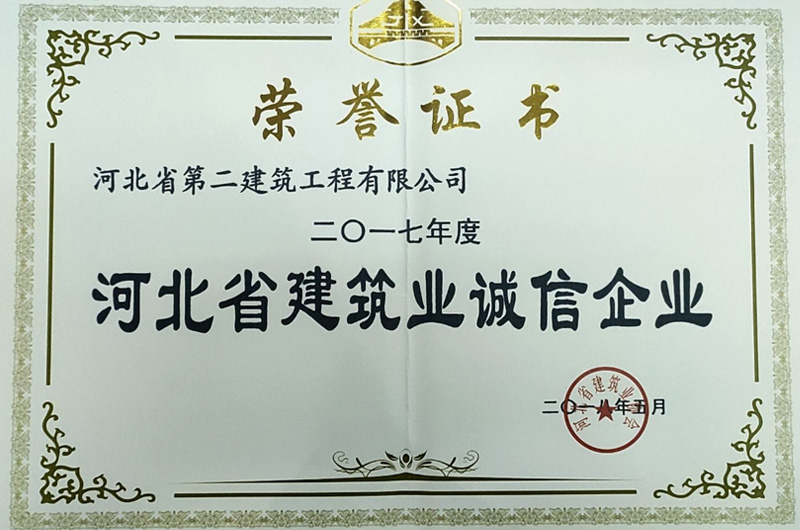 二0一七年度河北省建筑業(yè)誠信企業(yè)