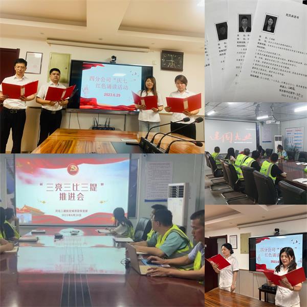 6月29日下午,四分公司機關(guān)黨支部組織機關(guān)黨員、入黨積極分子開(kāi)展了誦讀紅色經(jīng)典活動(dòng)。在活動(dòng)現場(chǎng),黨員、入黨積極分子以飽滿(mǎn)的熱情誦讀了《 黨在我心中》《紅色信仰》等紅色經(jīng)典篇目,為即將到來(lái)的“七一”建黨節獻上最誠摯的祝福,“我們生在紅旗下,長(cháng)在春風(fēng)里,不經(jīng)戰亂,不缺衣食”“與時(shí)俱進(jìn),鮮艷的黨旗堅定的飄揚著(zhù)永不褪色的信仰”......一篇篇紅色經(jīng)典鼓舞人心,大家跟隨著(zhù)誦讀身臨其境地感受著(zhù)黨的百年滄桑變化。